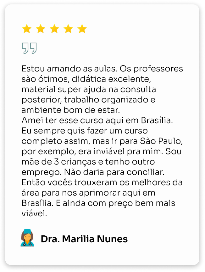 A Dra. Marcela Marques ensina com linguagem clara, sem arrogância, e compartilha tudo o que aplica em consultório e centro cirúrgico, garantindo que você tenha segurança para atuar.
